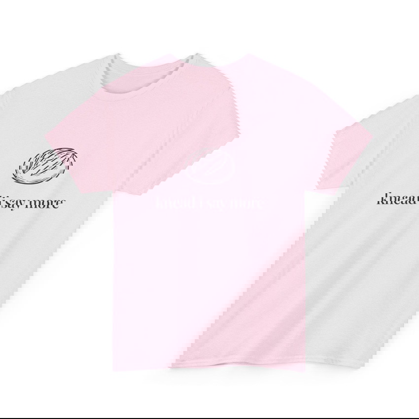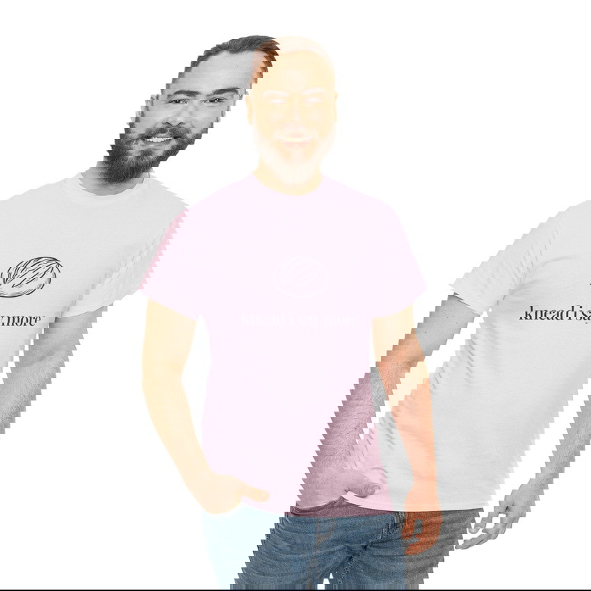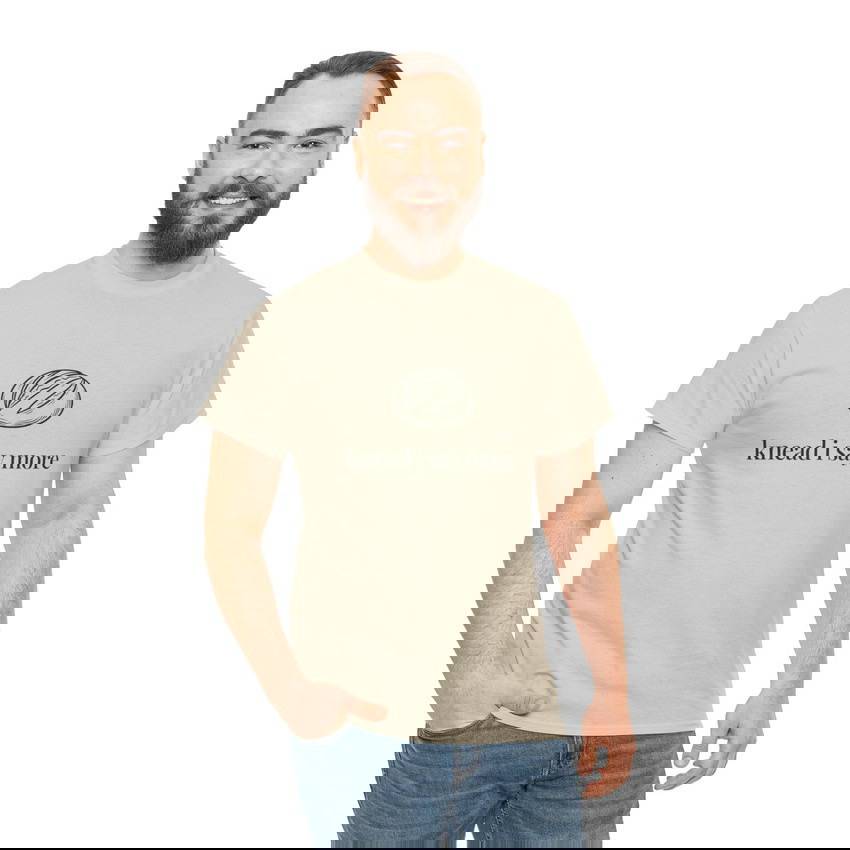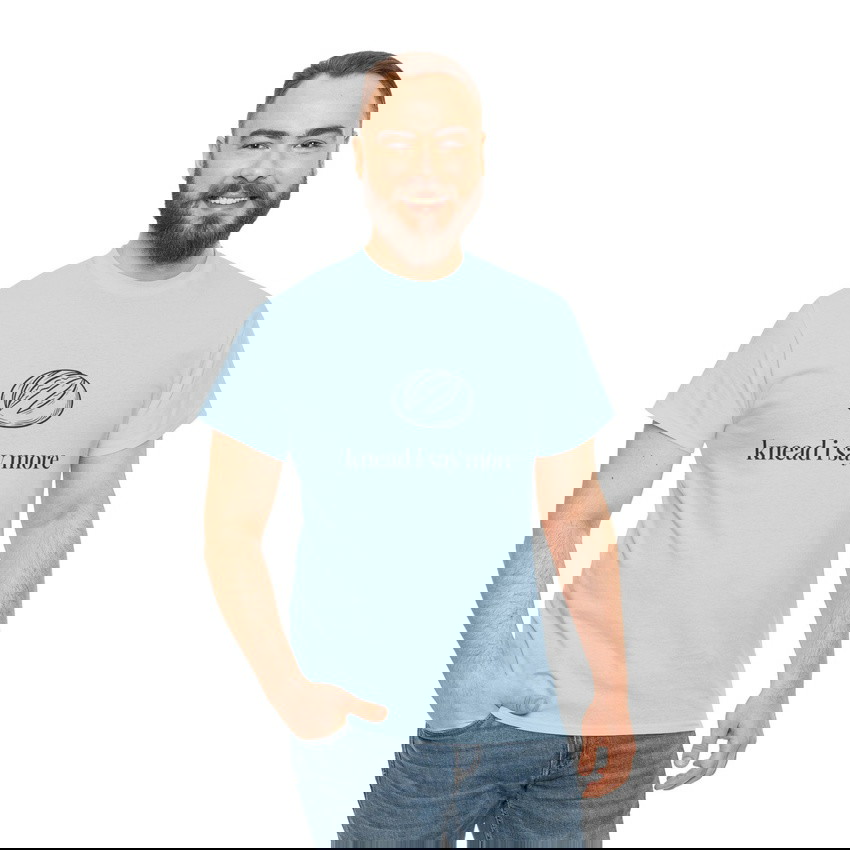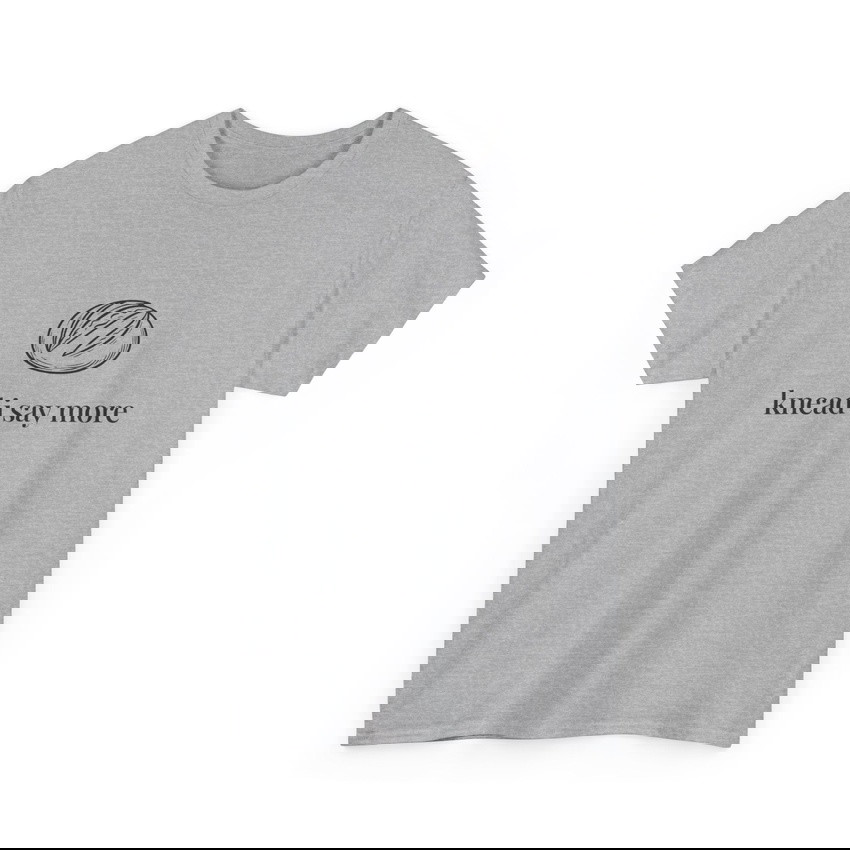 The clean, minimalist design features a simple line-art sourdough boule above the tagline "knead i say more" in a straightforward, easy-to-read font. No frills, no over-the-top graphics—just a quiet nod to the craft.